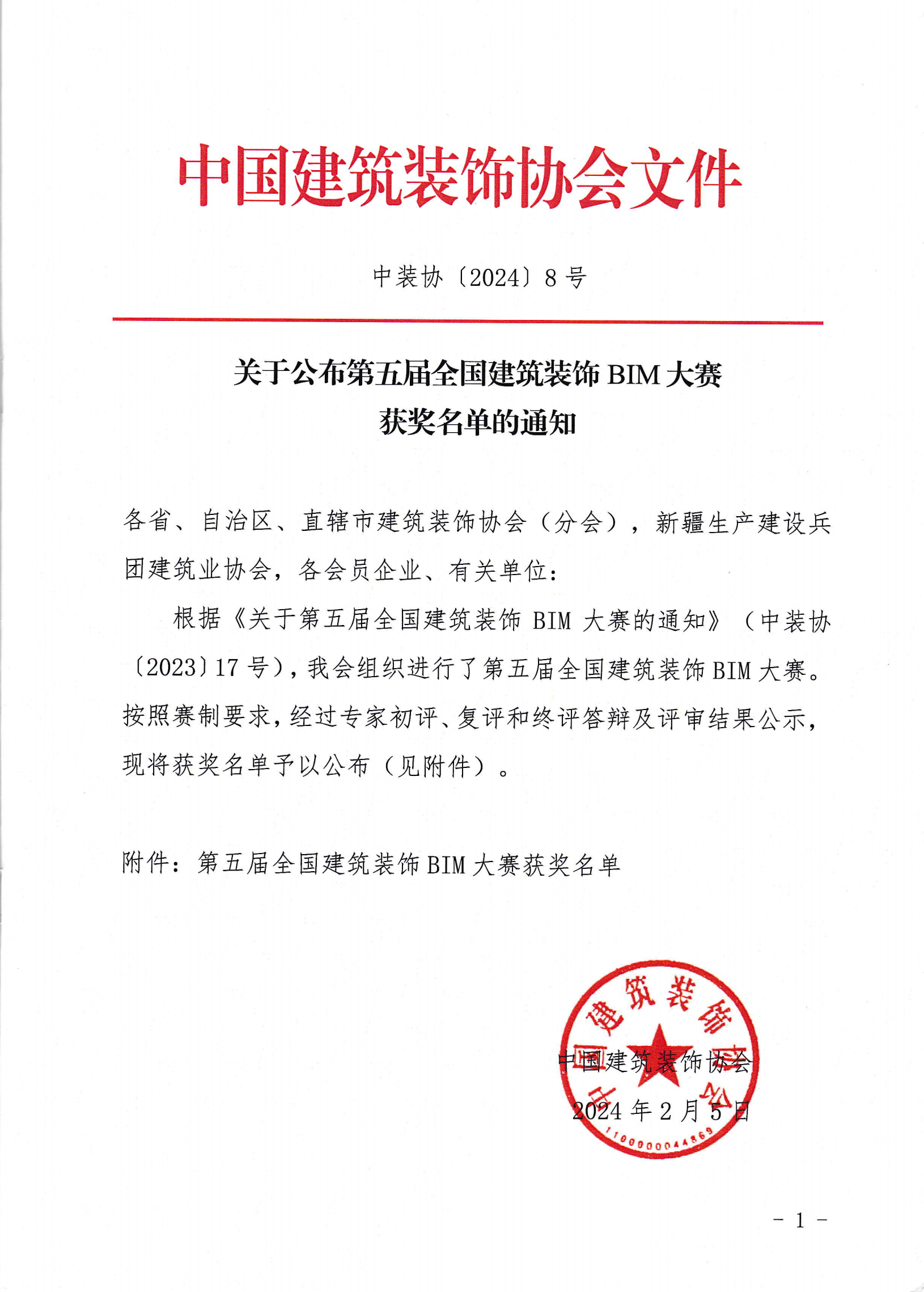 近日,第五屆全國(guó)建筑裝飾BIM大賽獲獎(jiǎng)作品公示
